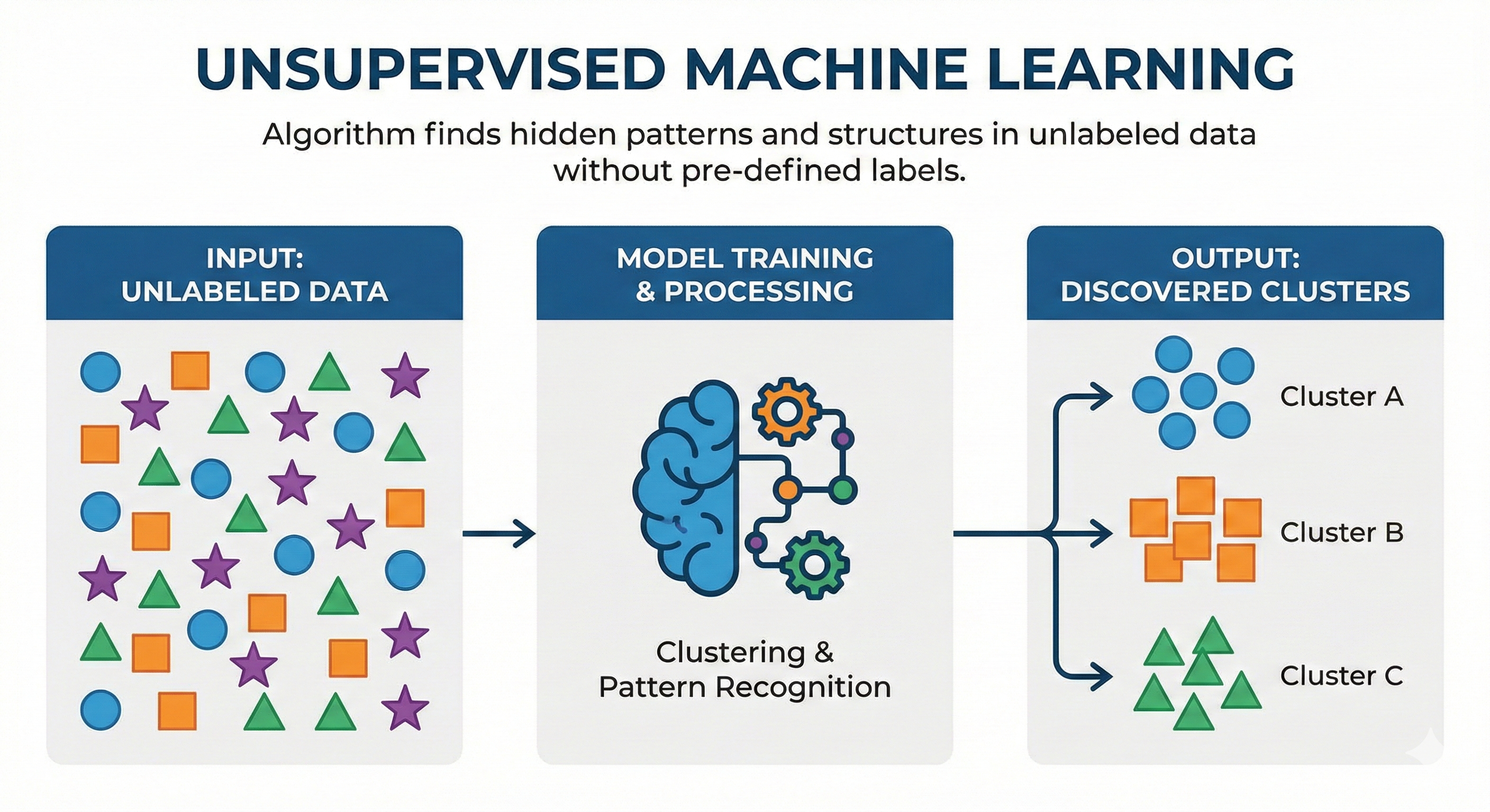 Learns from unlabeled data by discovering hidden patterns or structure.